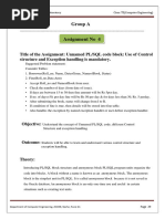 Practical 4: Unnamed PL/SQL code block: Use of Control structure and Exception