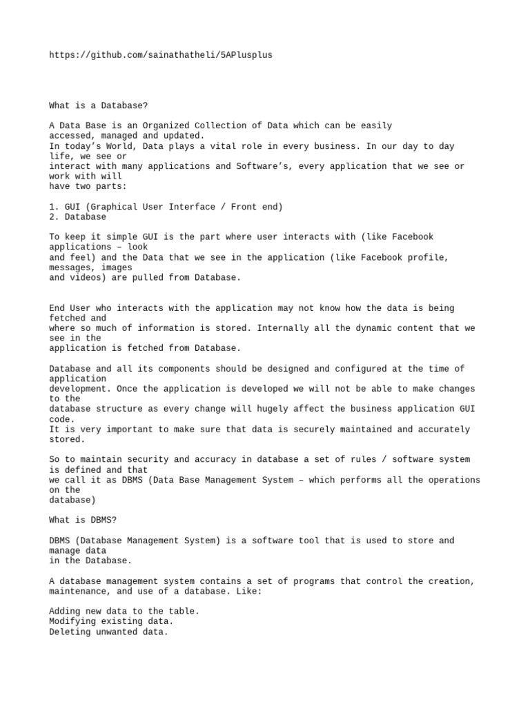 maintenance, and use of a database. Like: