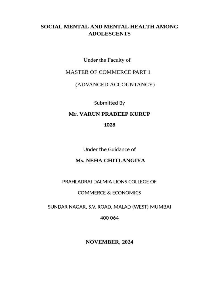 Keywords: Social media, Mental Health, Adolescents
