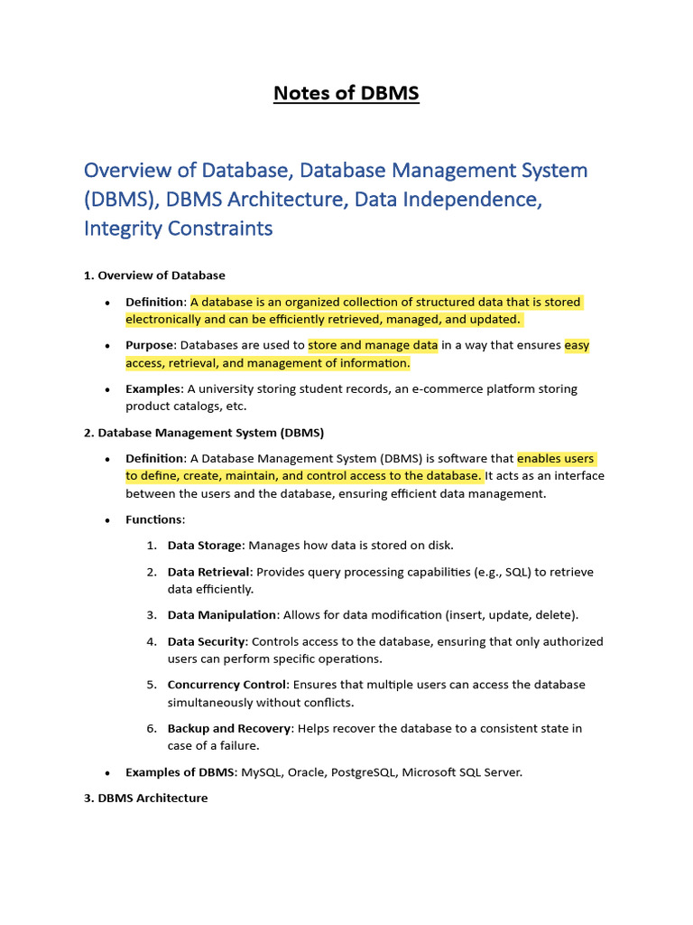 DBMS - Notes Full