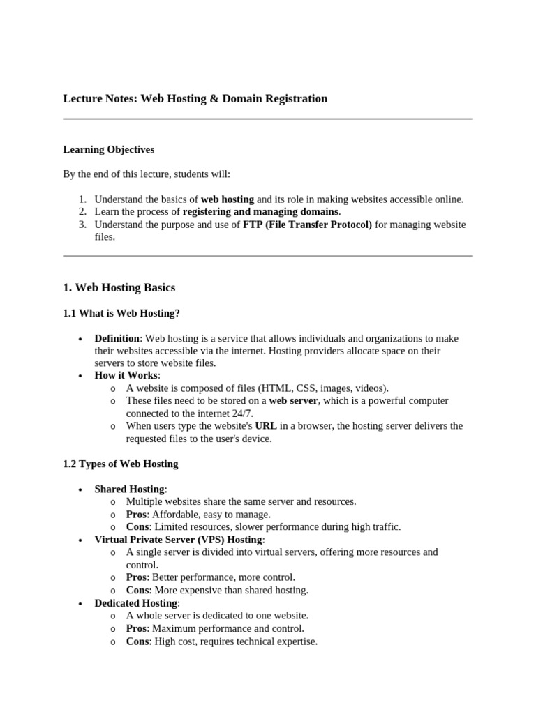 1. Understand the basics of web hosting and its role in making websites accessible online.