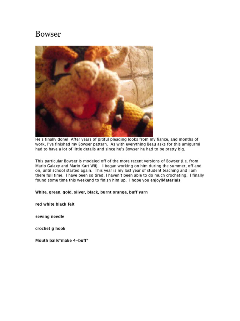work, I’ve finished my Bowser pattern. As with everything Beau asks for this amigurmi