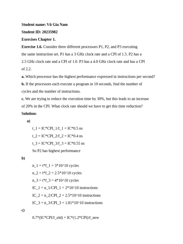 the same instruction set. P1 has a 3 GHz clock rate and a CPI of 1.5. P2 has a