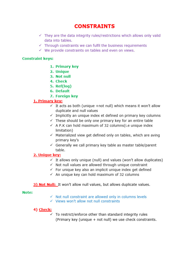 3) Not Null: It won’t allow null values, but allows duplicate values.