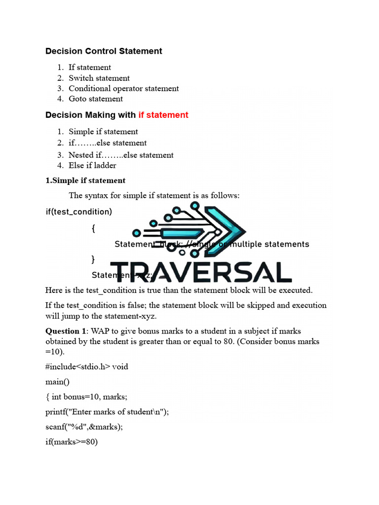 Question 1: WAP to give bonus marks to a student in a subject if marks