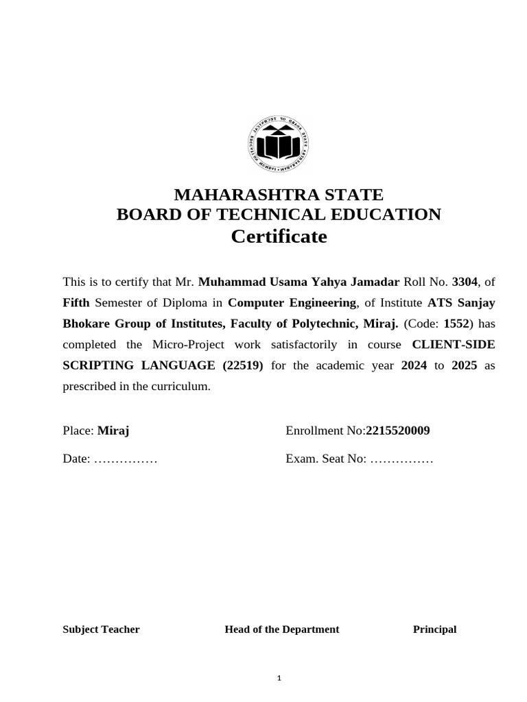 completed the Micro-Project work satisfactorily in course CLIENT-SIDE