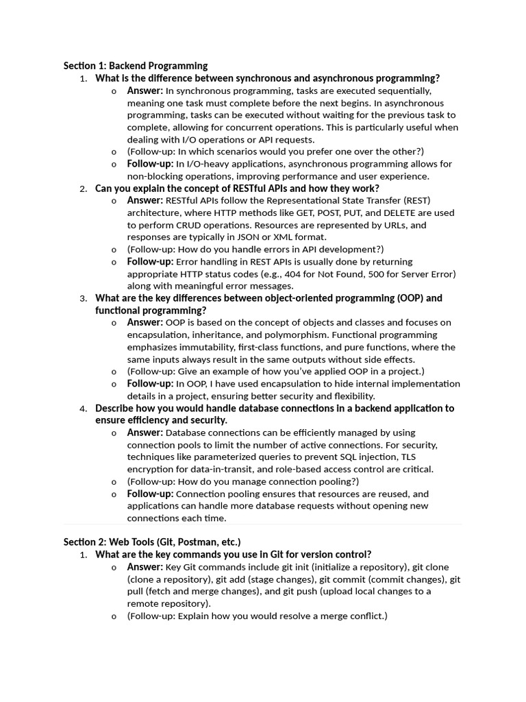 o Follow-up: Connection pooling ensures that resources are reused, and