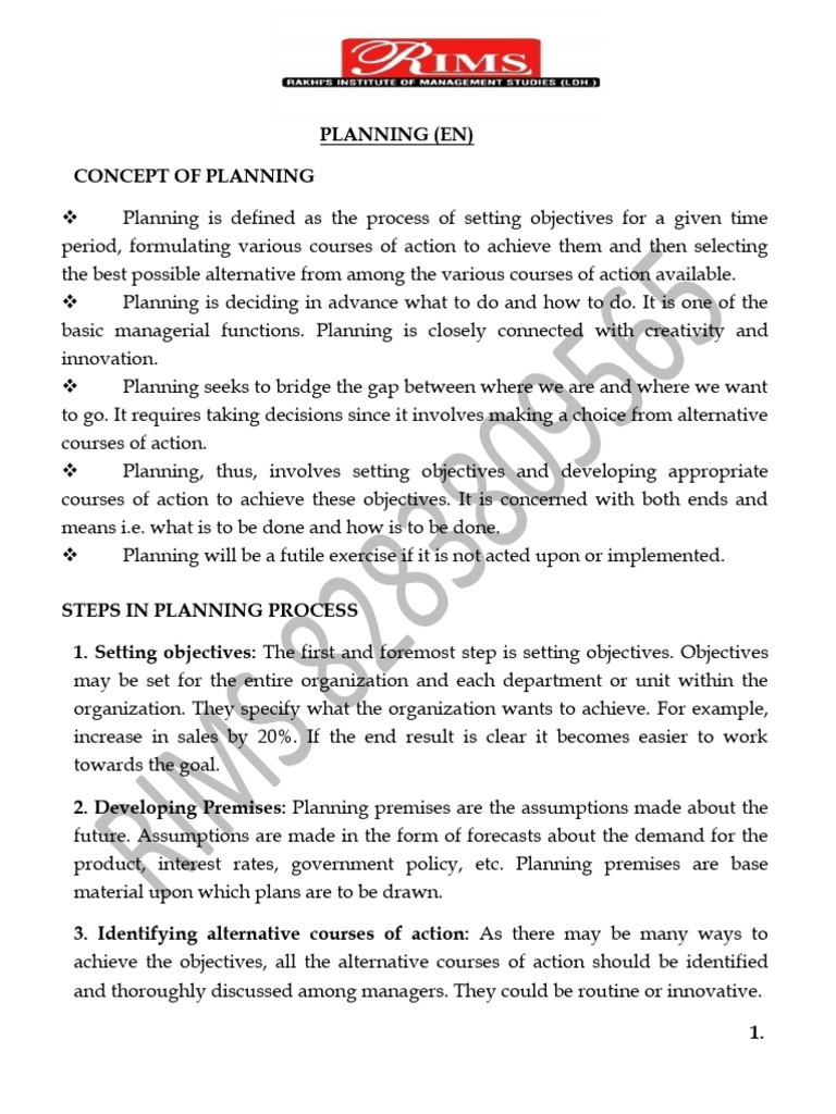 help of well defined plans. Thus, planning is purposeful. Planning has no
