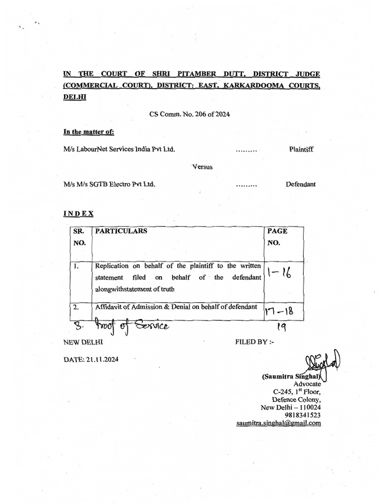 ‘Mis M/s SGTB Electro Pvt Ltd. Defendant