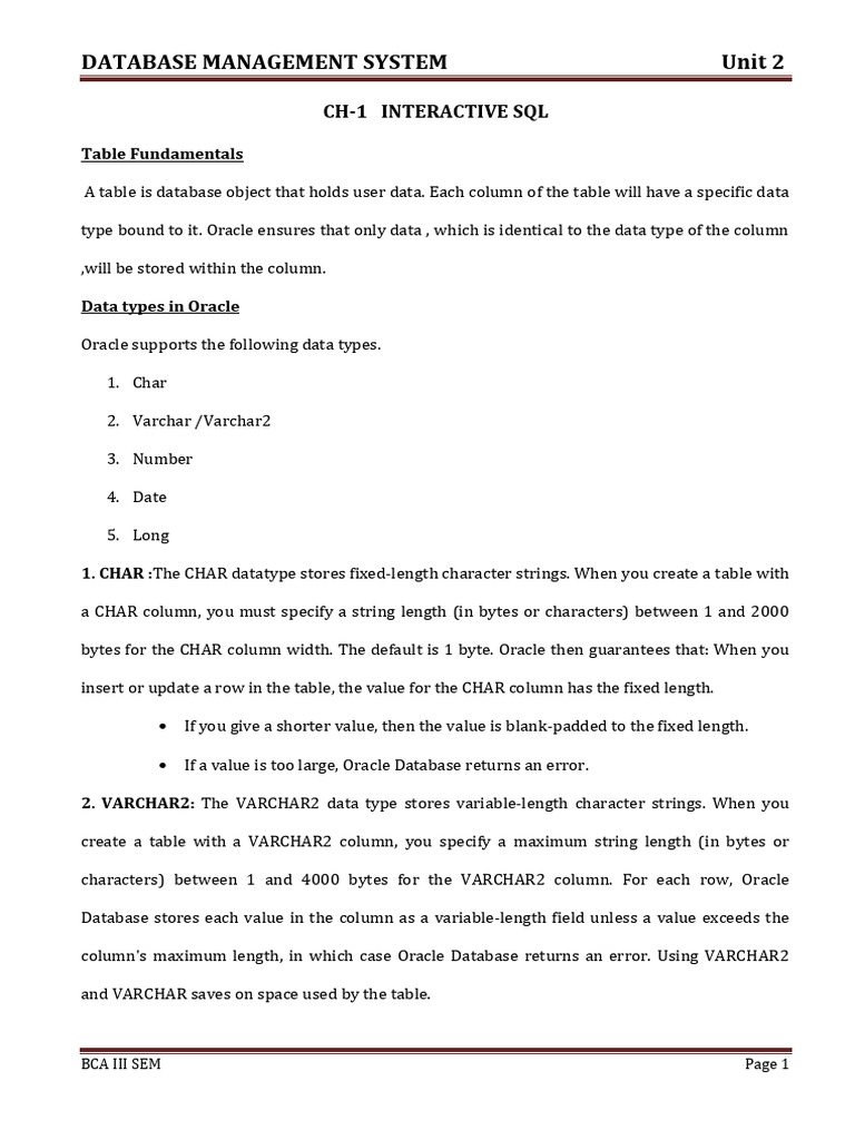 bytes for the CHAR column width. The default is 1 byte. Oracle then guarantees that: When you