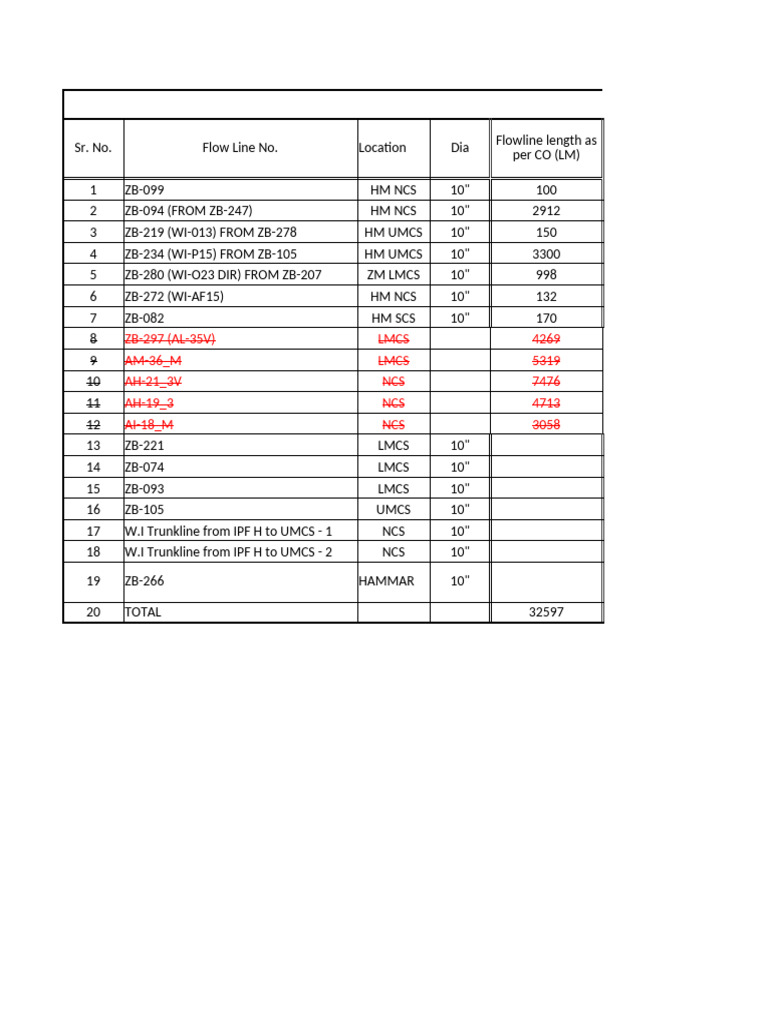 Sr. No. Flow Line No. Location Dia length as Rev-01 (after Ground A/G Length remarks