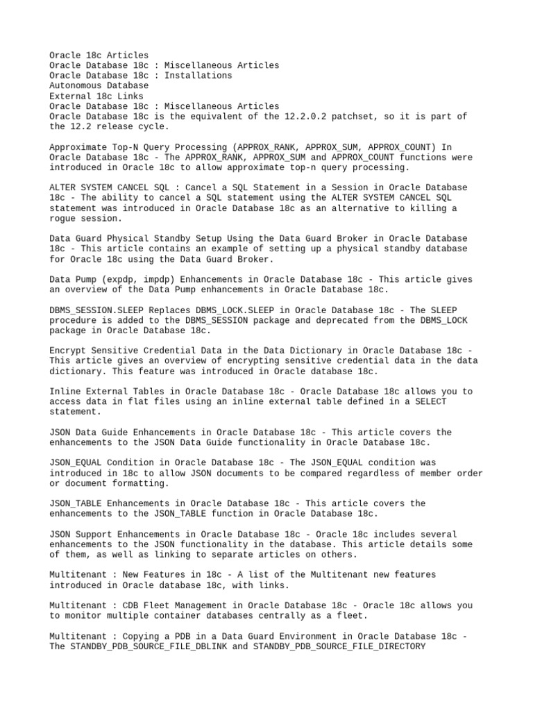 Oracle SQL and PL/SQL Enhancements in Oracle Database 18c - This page provides