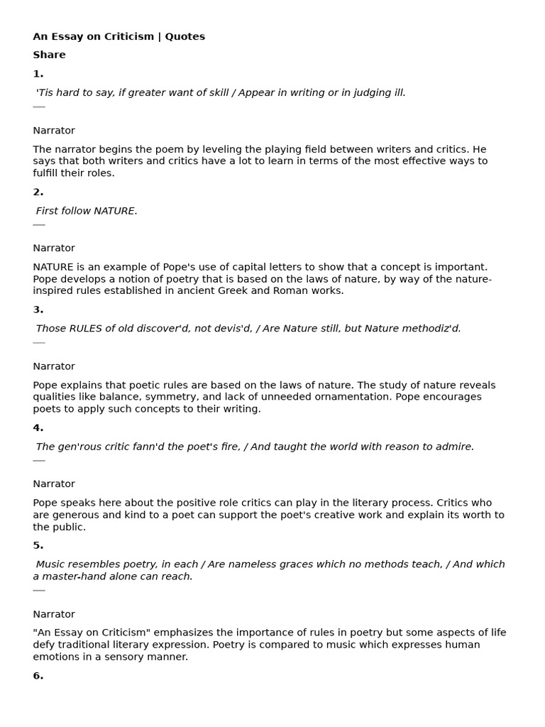 Pope advises critics to consider a work of literature in its totality. Critics too often focus on a