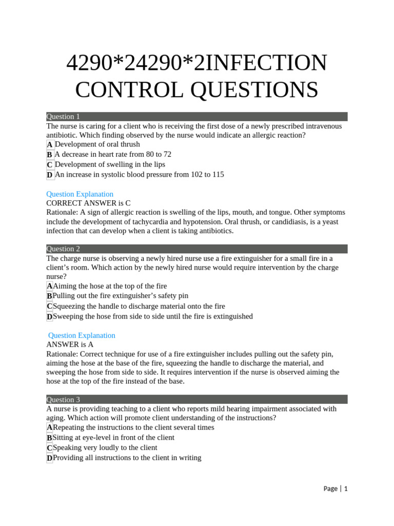 Infection Control Questions