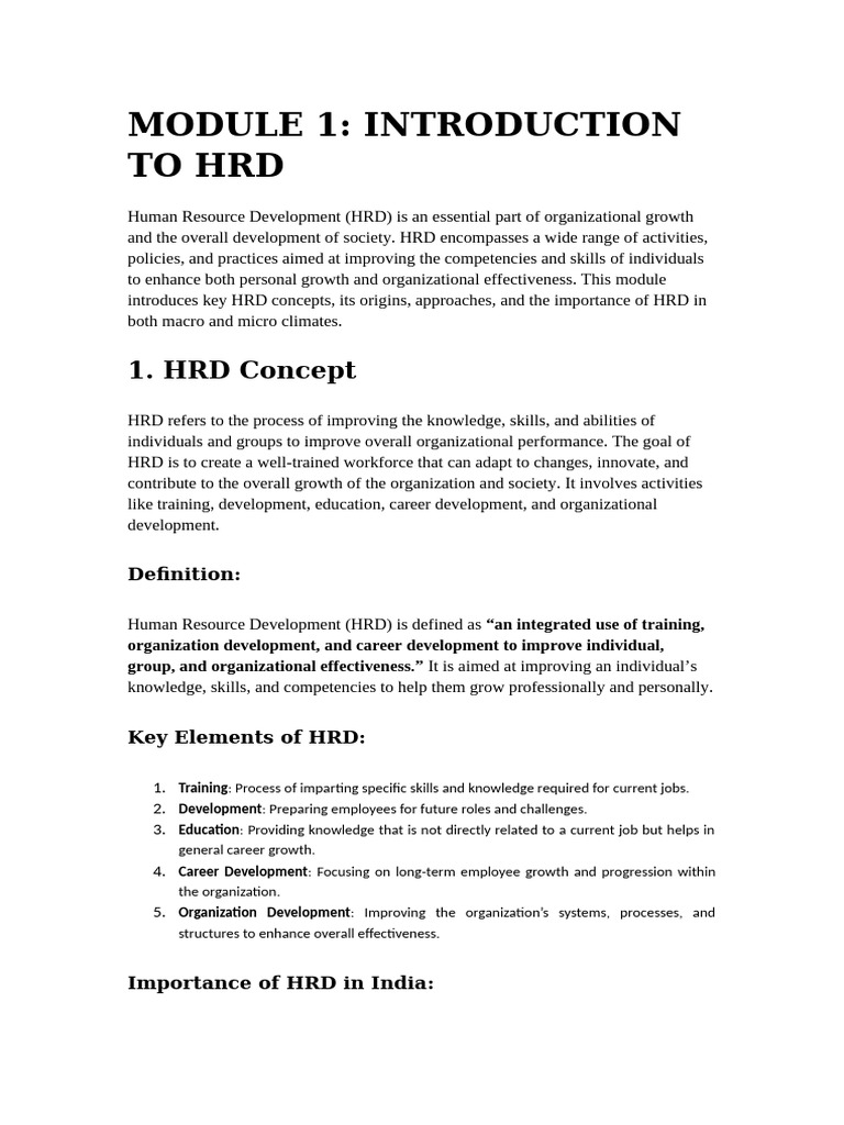 introduces key HRD concepts, its origins, approaches, and the importance of HRD in