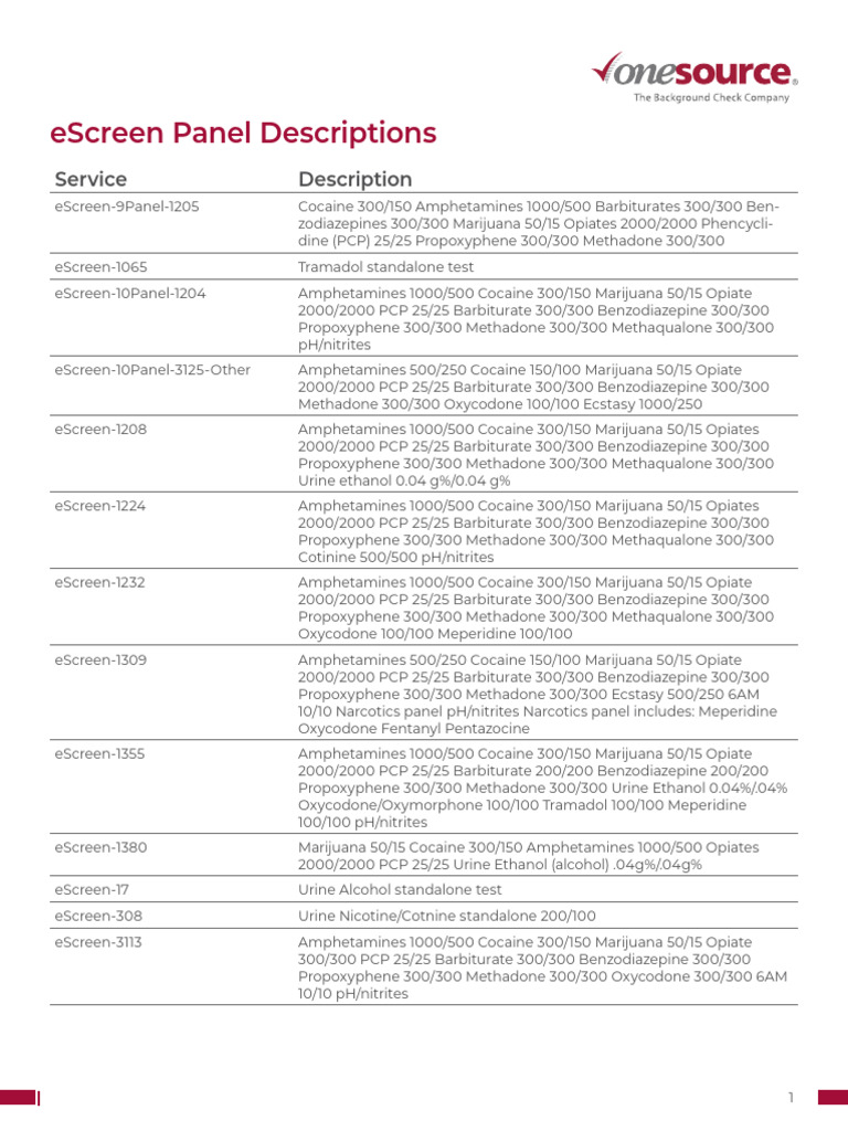 eScreen-10Panel-1204 Amphetamines 1000/500 Cocaine 300/150 Marijuana 50/15 Opiate