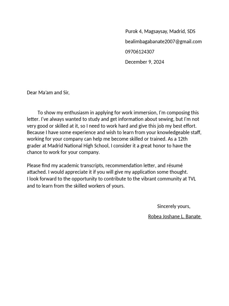 To show my enthusiasm in applying for work immersion, I'm composing this