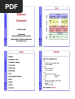 Lossless compression: the decompressed data is exactly the same as the original one Example: text compression, medical images, etc Lossy compression: the decompressed data is not exactly the same as the original data. Some details have been lost although the loss is often acceptable. Example: image compression (JPEG), video compression (MPEG), audio compression (MP3)