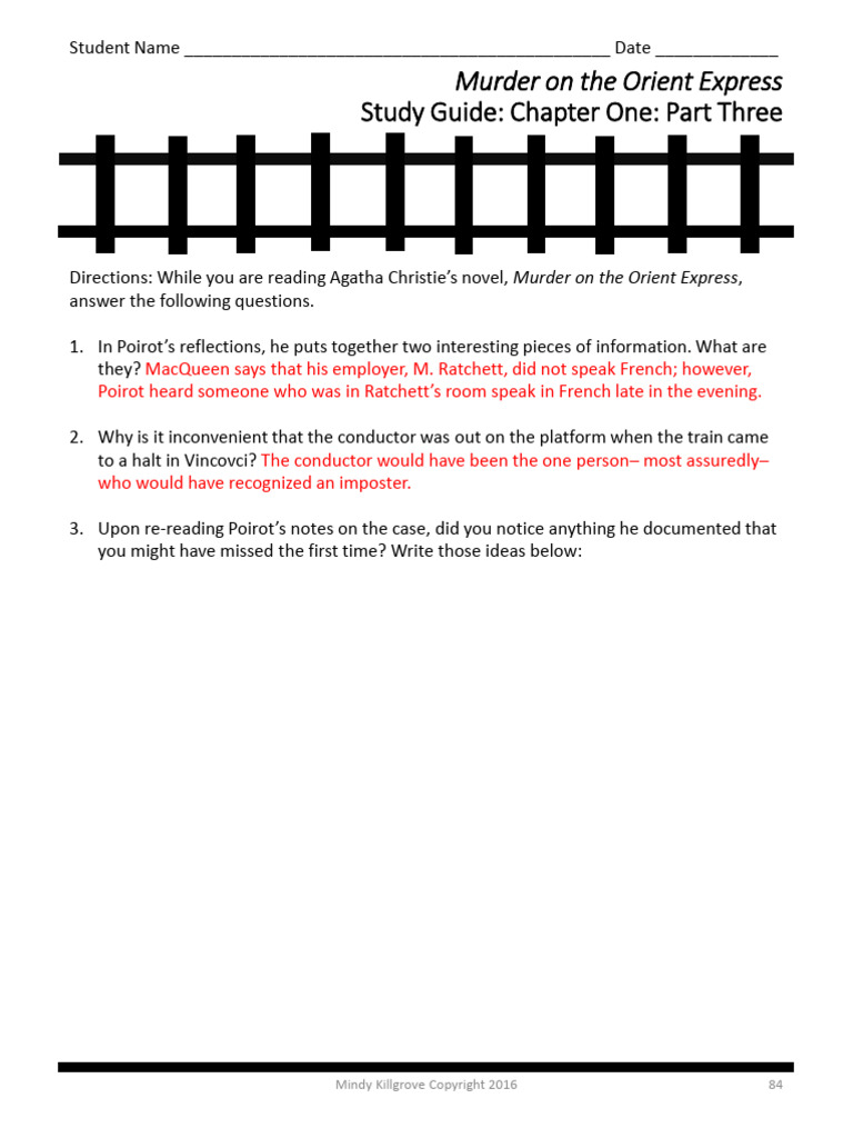 Directions: While you are reading Agatha Christie’s novel, Murder on the Orient Express,