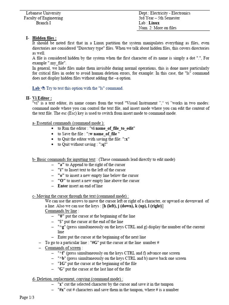 a- Create, edit and save the following text file as it is (name it "notes") with vi :