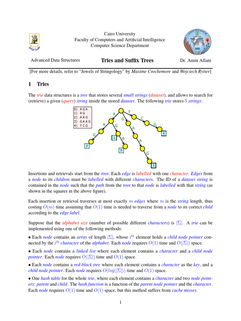 Advanced Data Structures Tries and Suffix Trees Dr. Amin Allam
