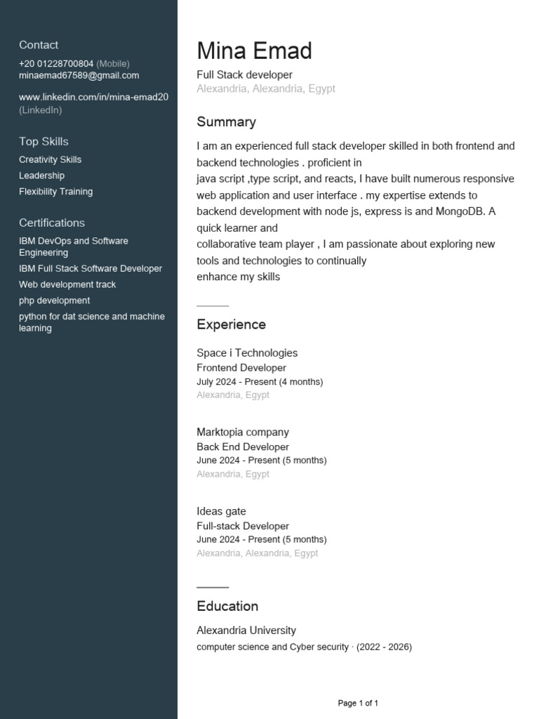 Leadership java script ,type script, and reacts, I have built numerous responsive