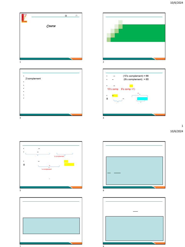 • The concept of signed numbers and • 100 – 34 = ? (10’s complement) = 66