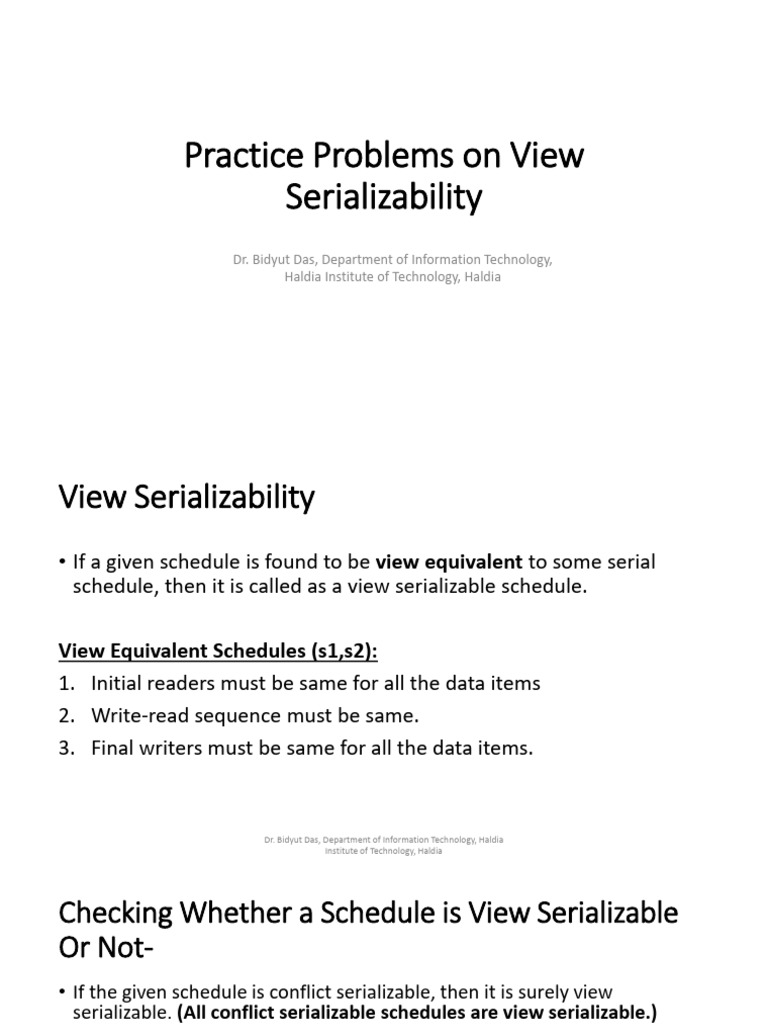Problem-04: Check whether the given schedule S is view serializable or not. If yes,