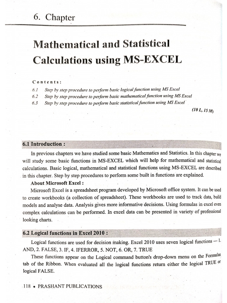 calculations. Basic logical, mathematical and statistical functions using MS-EXCEL are described