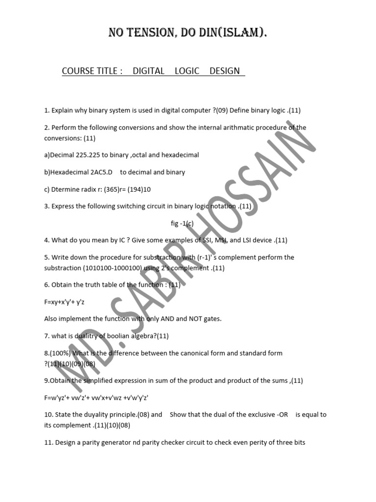 COURSE TITLE : DIGITAL LOGIC DESIGN