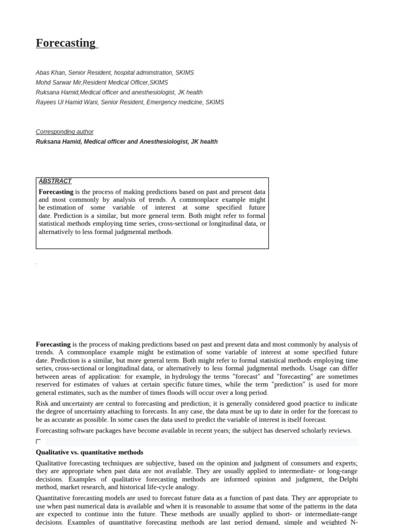 series, cross-sectional or longitudinal data, or alternatively to less formal judgmental methods. Usage can differ