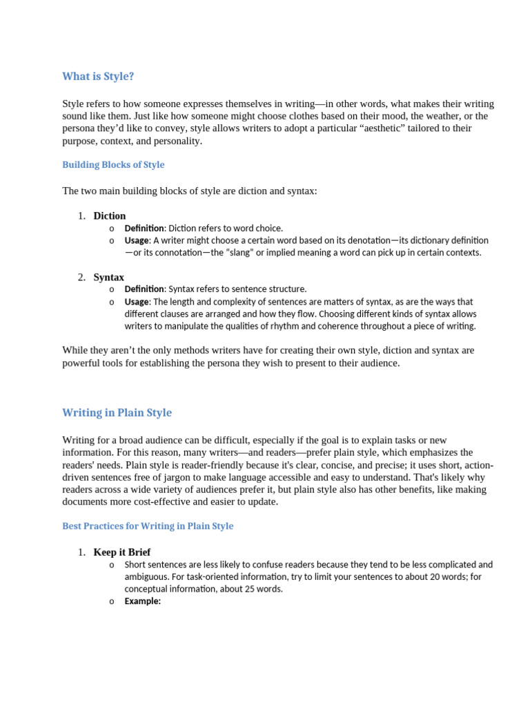 readers' needs. Plain style is reader-friendly because it's clear, concise, and precise; it uses short, action-