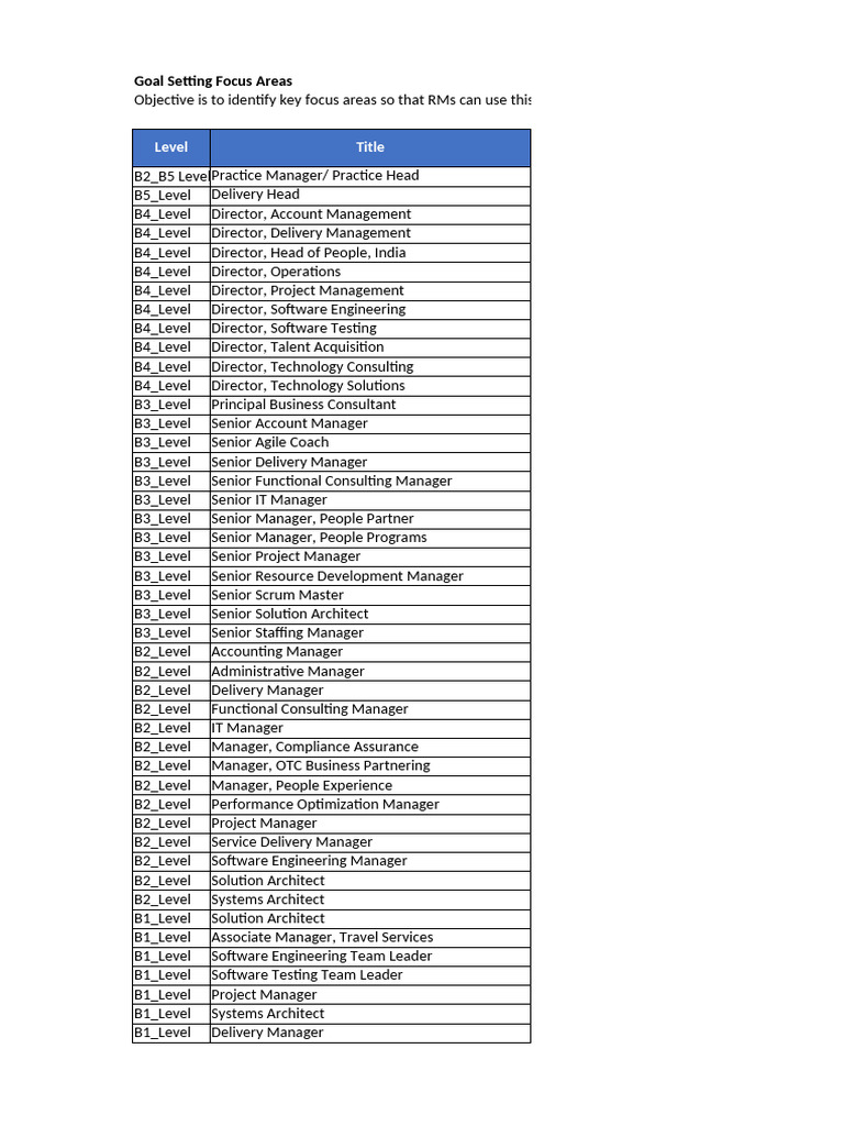 can use this as reference for goal setting. Please note that this doesn't limit RMs to set other set of goals based on actual role played b