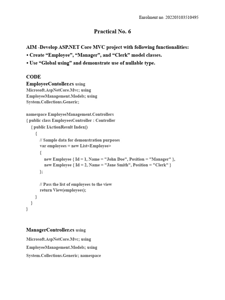 AIM -Develop ASP.NET Core MVC project with following functionalities: