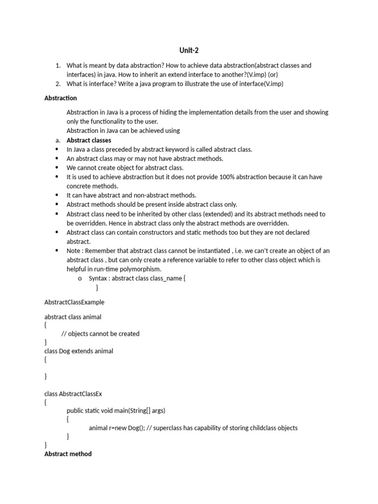 1. What is meant by data abstraction? How to achieve data abstraction(abstract classes and