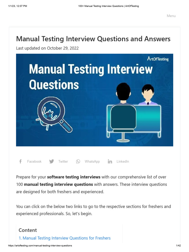 https://artoftesting.com/manual-testing-interview-questions 2/42