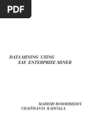 the results of the data mining analyses of the data sets used in this manual. Here, you can compare your analyses (as suggested in the exercises) with those of the author. Remember that there is no right answer when examining data sets. You can ask many questions about the data, and each answer will start to drill down to explore the data in more detail. It is up to you as the investigator to determine what is of interest and what is important to analyze. This manual provides you with some starting points. It is assumed that you have some basic knowledge of statistics and some familiarity with SAS. You do not need to know any data mining methods. Think of data mining as a process of exploration instead of a collection of tools to investigate the data, and then choose the methods that will extract the most information from the data. I have been a professor of statistics for more than 25 years, and I have used SAS even longer. I started using SAS Enterprise Miner software early in its development and have developed classes in data mining using it. More recently, I started teaching data mining and SAS Enterprise Miner software in online courses at the University of Louisville. My students are required to use SAS and SAS Enterprise Miner software from the beginning. I emphasize technical writing development in every statistics course that I teach. This manual flows naturally from the material I teach in my data mining courses. I hope that you have an enjoyable experience as you explore your data.