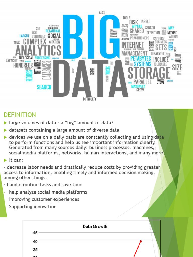 5. Data Visualization: presented in visual formats such as graphs, charts, and
