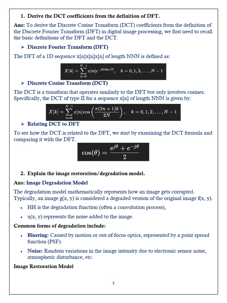 1. Derive the DCT coefficients from the definition of DFT.