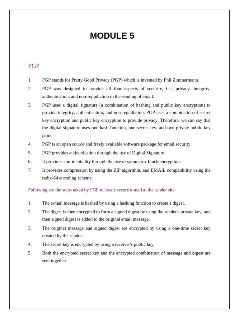 1. PGP stands for Pretty Good Privacy (PGP) which is invented by Phil Zimmermann.
