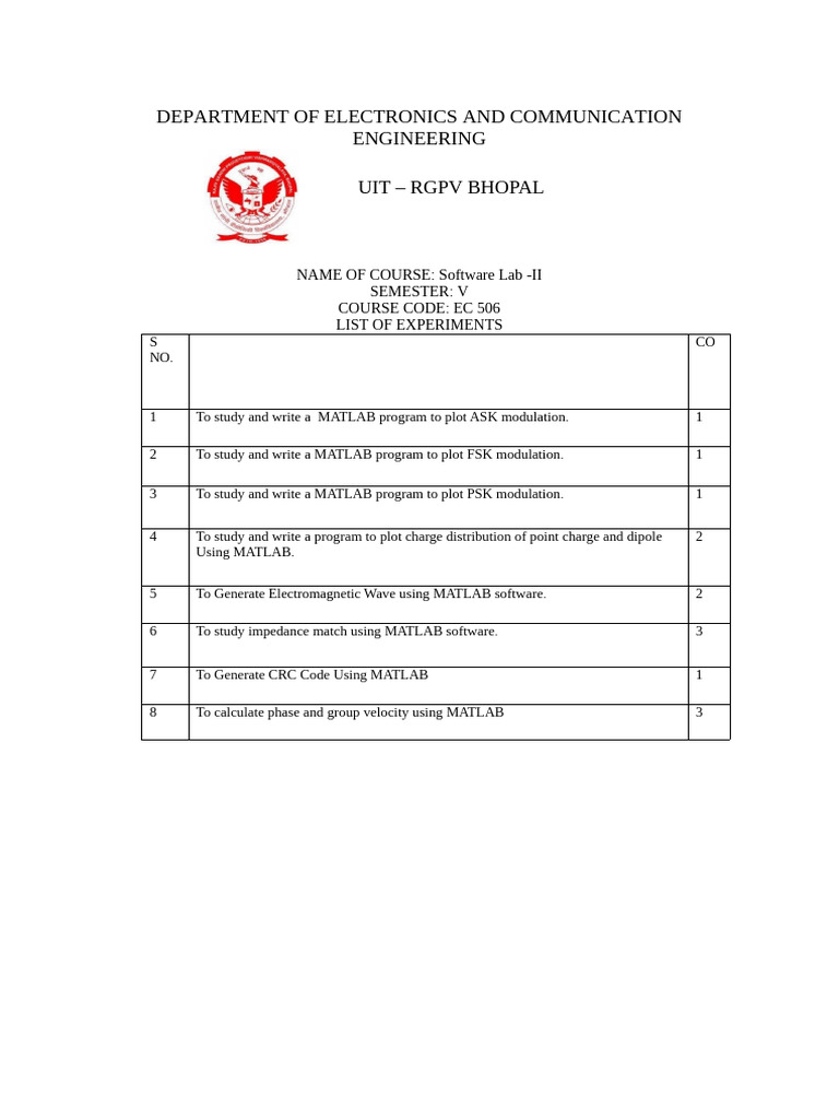 1 To study and write a MATLAB program to plot ASK modulation. 1