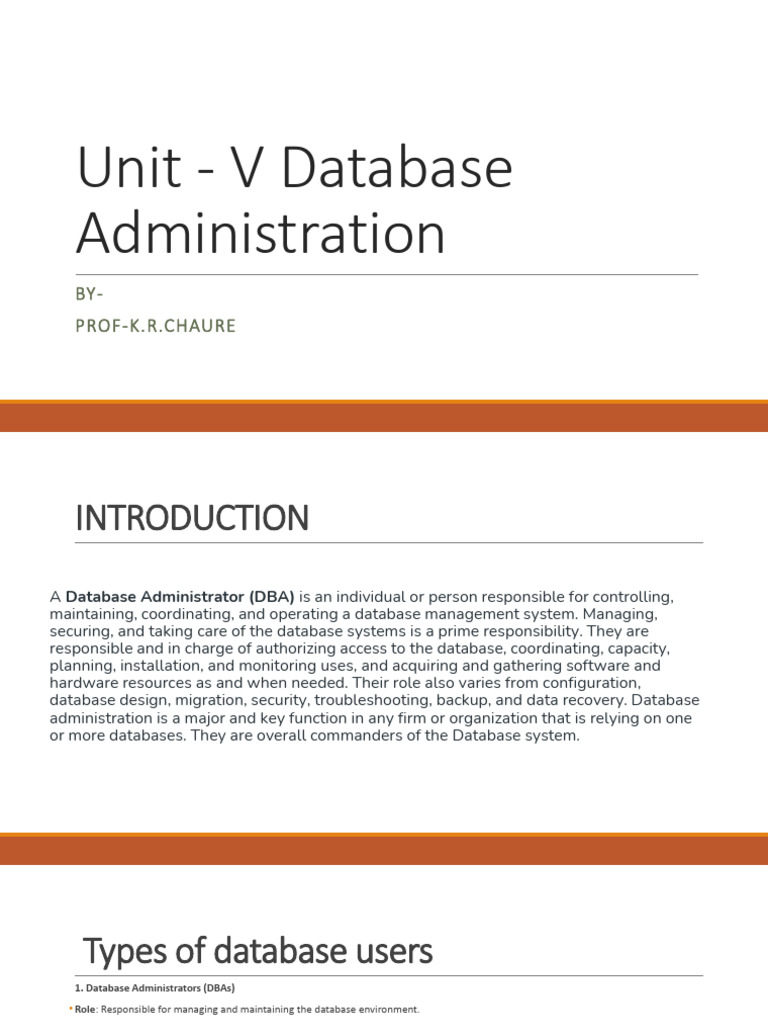 A Database Administrator (DBA) is an individual or person responsible for controlling,