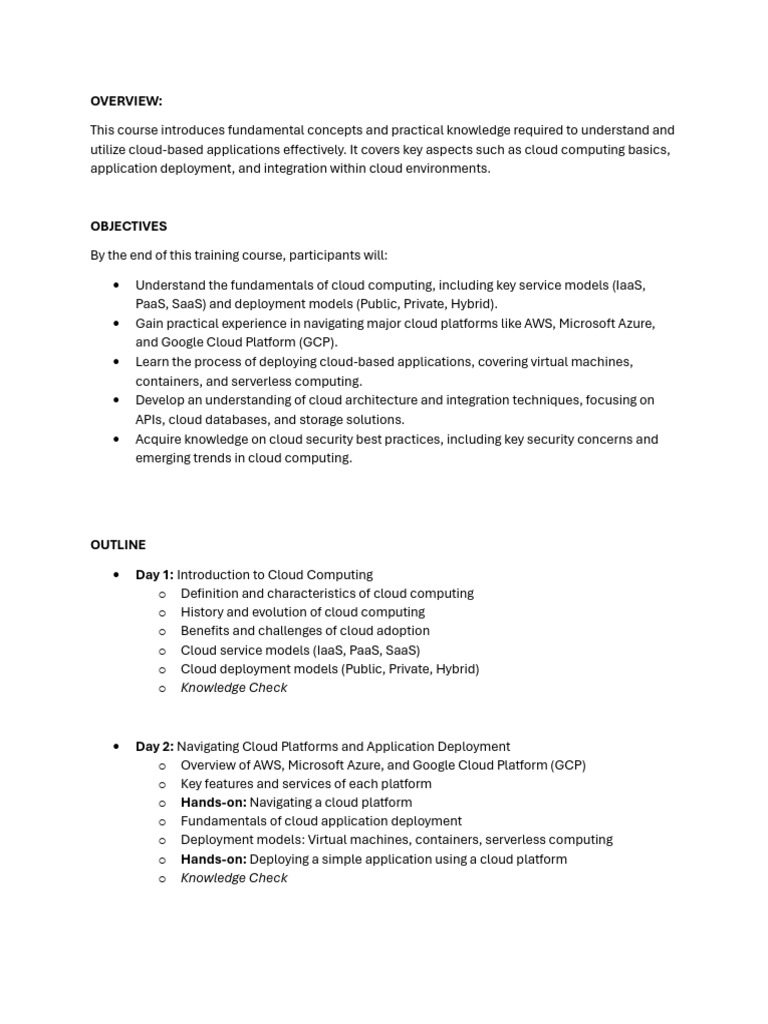 • Day 3: Cloud Architecture, Security, and Best Practices