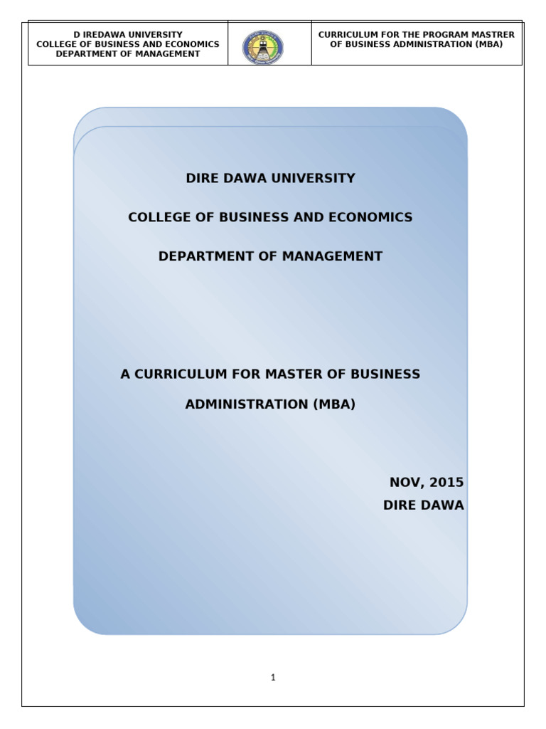 D IREDAWA UNIVERSITY CURRICULUM FOR THE PROGRAM MASTRER