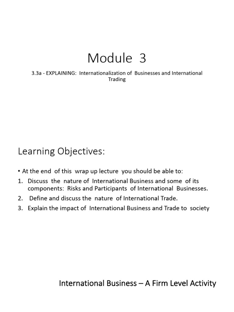 3.3a - EXPLAINING: Internationalization of Businesses and International