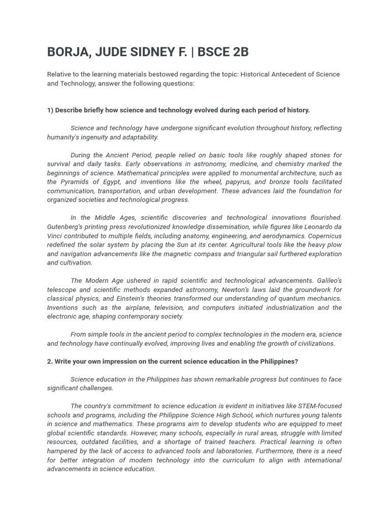 Relative to the learning materials bestowed regarding the topic: Historical Antecedent of Science