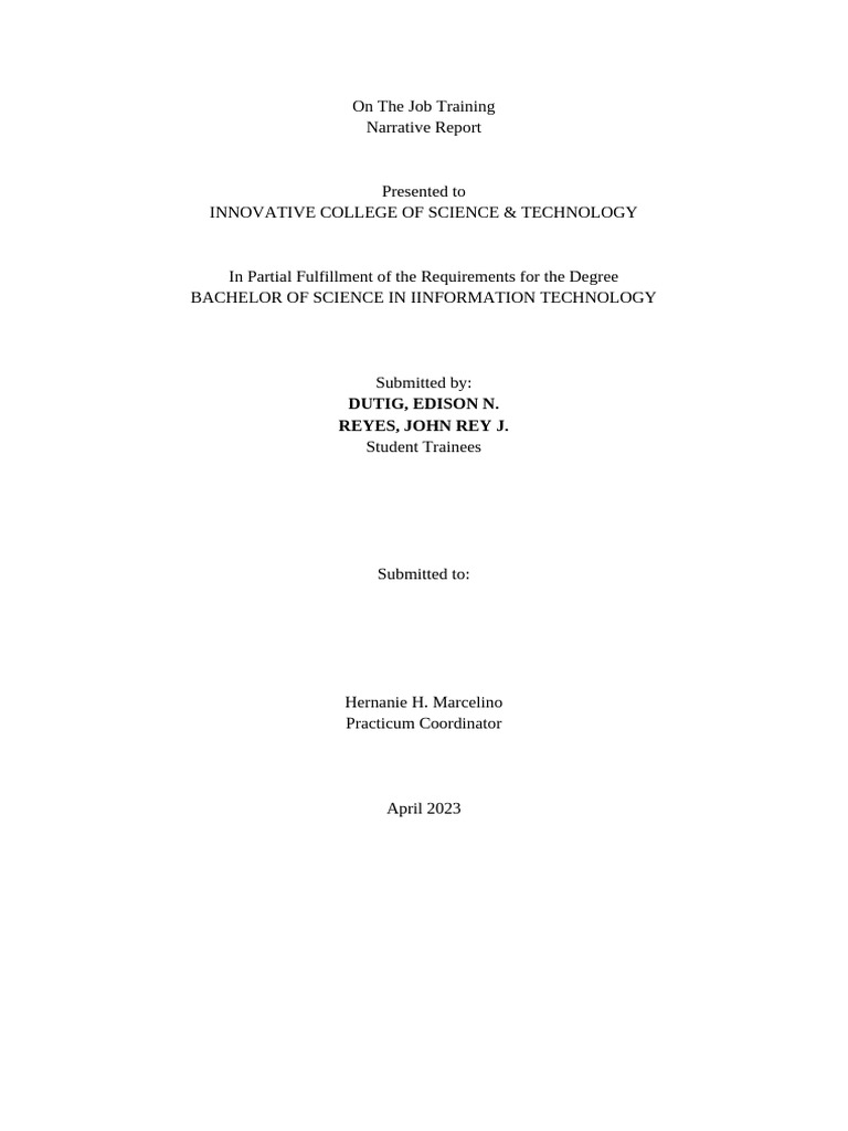 This narrative report is fully dedicated To our Almighty God That serves as my guide and