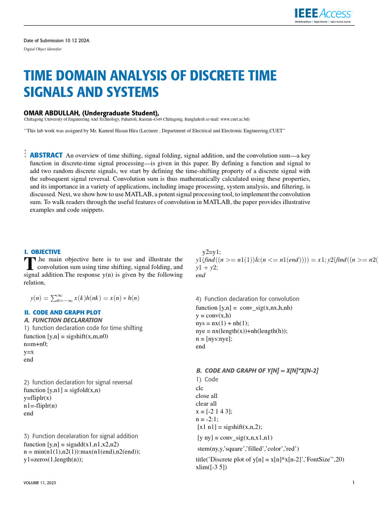 sum. To walk readers through the useful features of convolution in MATLAB, the paper provides illustrative