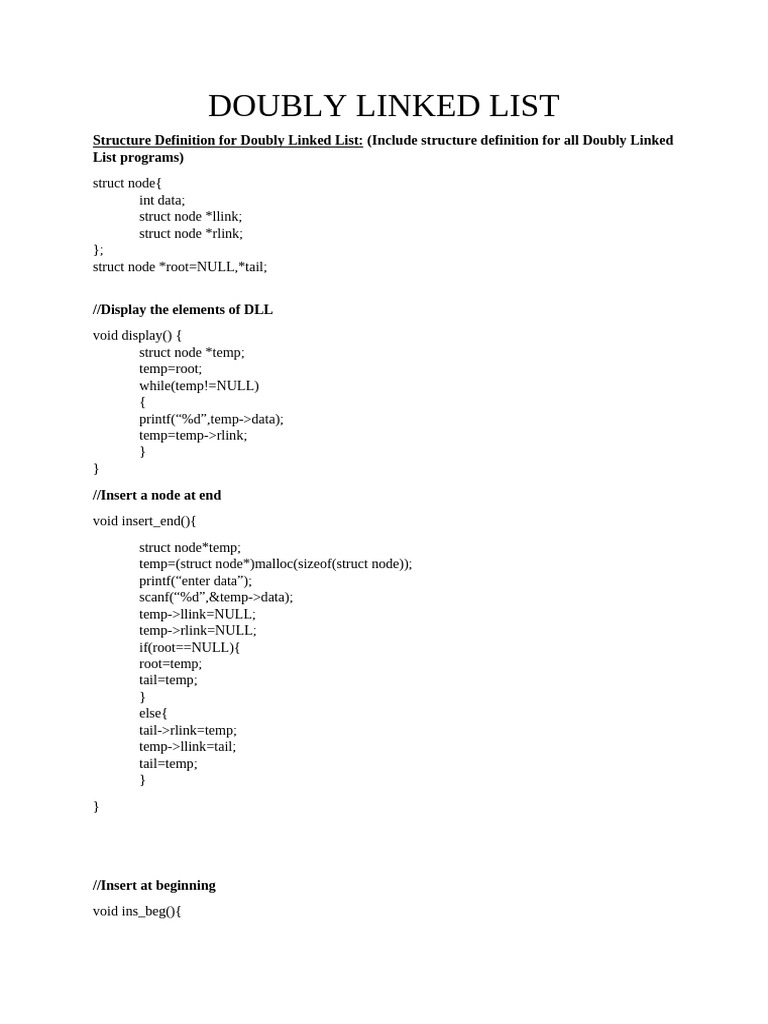 Structure Definition for Doubly Linked List: (Include structure definition for all Doubly Linked
