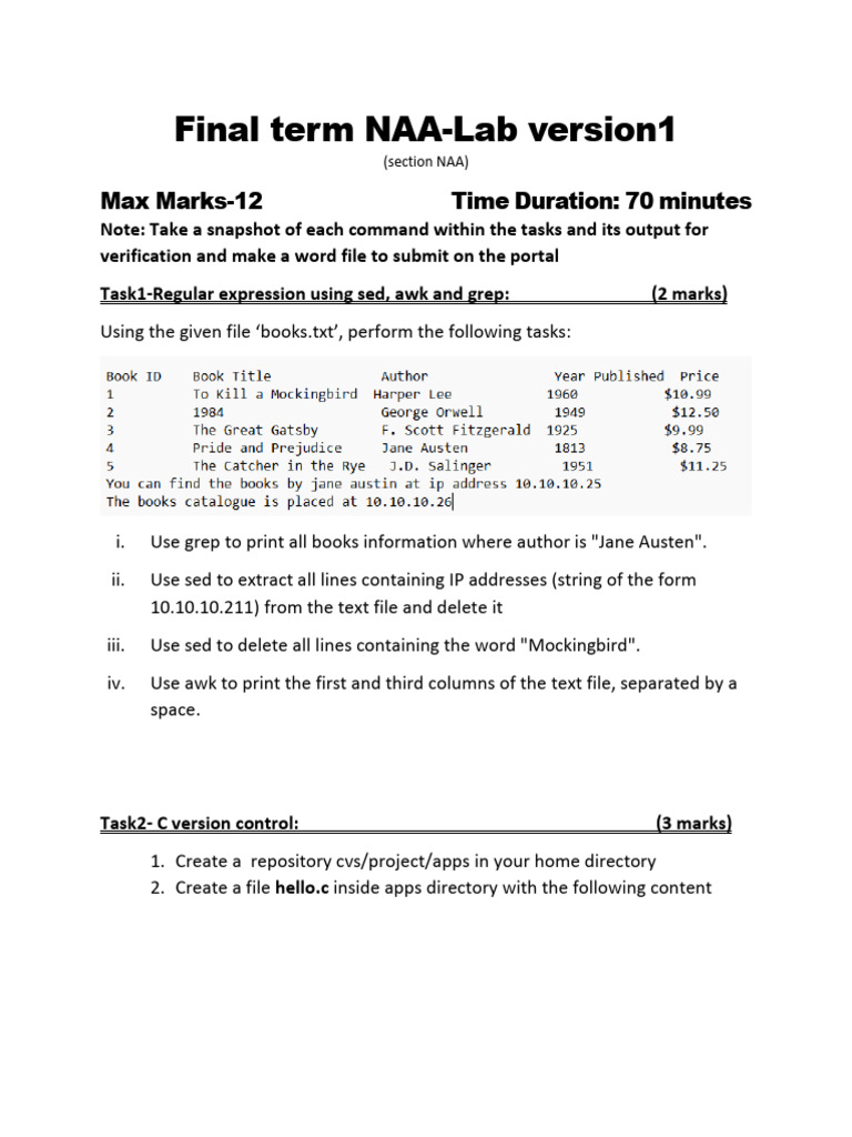 Task1-Regular expression using sed, awk and grep: (2 marks)